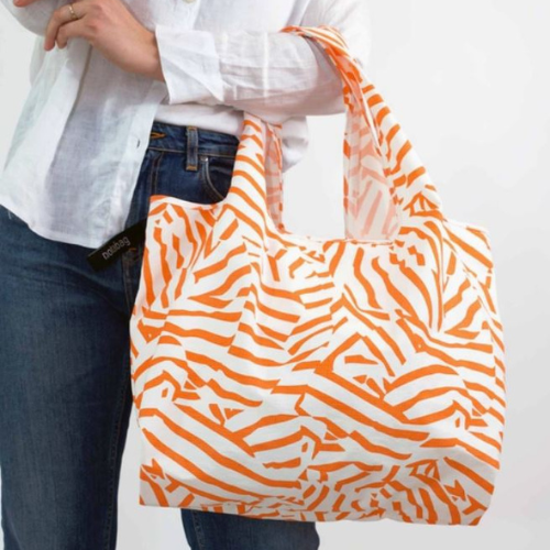 The Notabag Tote is a foldable shopping bag made from recycled plastic bottles. It's strong, lightweight, and water-resistant.