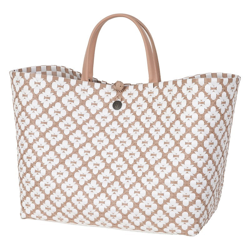 Great for taking to the market or a day in town. The soft PU leather handles make it easy to lift and carry. The unique wickerwork design makes this bag a real eye-catcher! Made from recycled plastic.