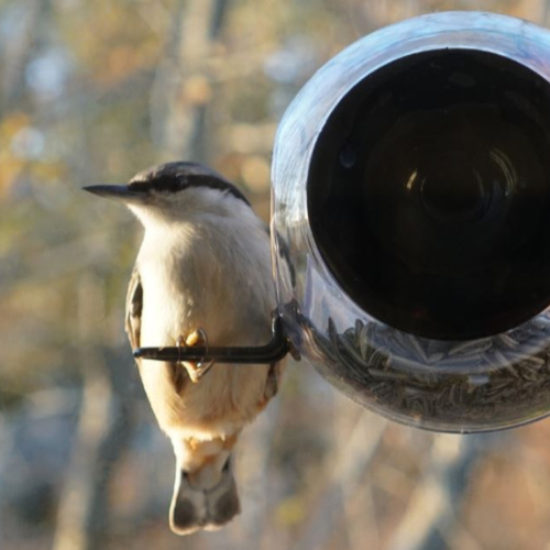 De BIRDFEEDER is een leuk cadeau om te geven en te krijgen. Je plaatst deze bol van recycleerbare plastic met zijn sterke zuignap aan het raam.