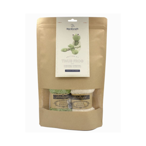 Dit pakket bevat een patroon, gemêleerd kwaliteitsgaren en alle materialen die nodig zijn om aan het werk te gaan (excl. breinaalden). Tinus Kikker is ongeveer 38 cm groot en is gemaakt met breinaalden van 3 mm.