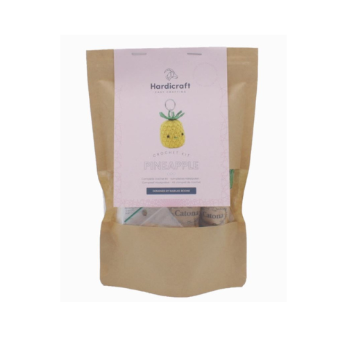 Pimp je tas met deze schattige Ananas tashanger. Elke (school)tas of sleutelbos heeft er toch één nodig! Dit pakket bevat een patroon, kwaliteitsgaren van 100% katoen en alle fournituren die nodig zijn om aan het werk te gaan (excl. haaknaald). De Ananas is ongeveer 9 cm hoog en is gemaakt met een haaknaald 2,5 mm.