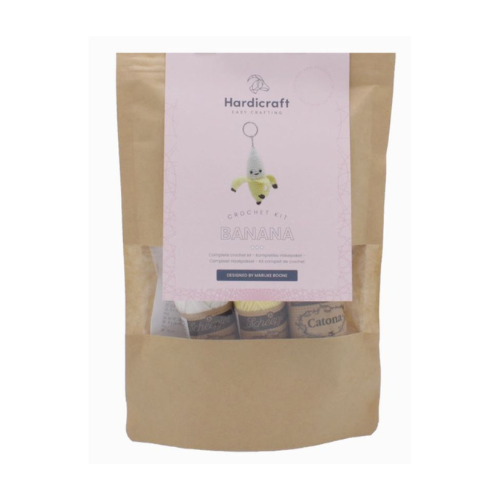Pimp je tas met deze schattige Banaan tashanger. Elke (school)tas of sleutelbos heeft er toch één nodig! Dit pakket bevat een patroon, kwaliteitsgaren van 100% katoen en alle fournituren die nodig zijn om aan het werk te gaan (excl. haaknaald). De Banaan is ongeveer 12 cm hoog en is gemaakt met een haaknaald 2,5 mm.