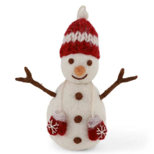Vilten sneeuwman met de hand gemaakt. Hoogte 10.5cm