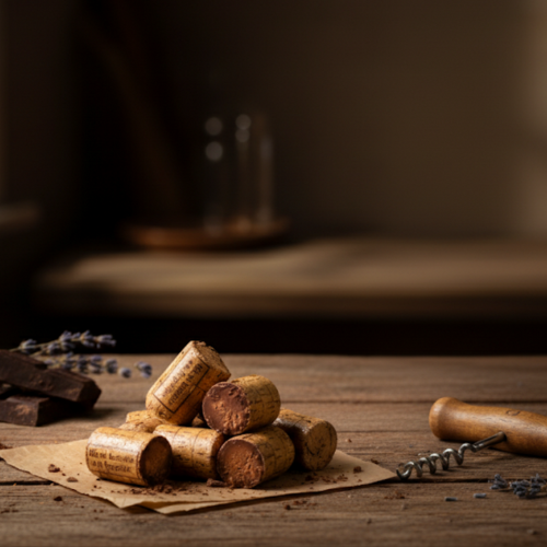 Zakje van 150g chocolade kurken gevuld met praliné.