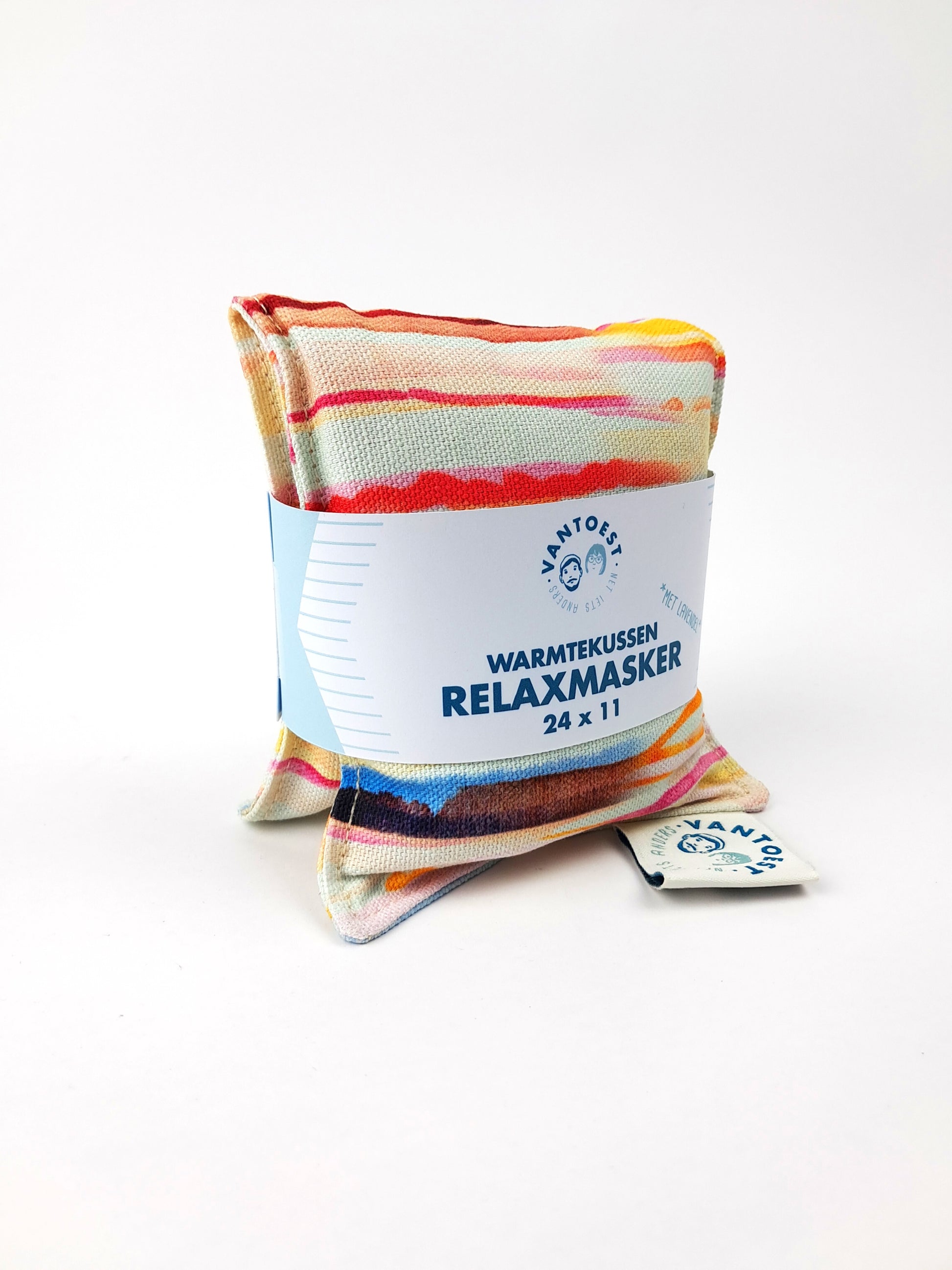 Relaxmasker gevuld met lijnzaad en lavendel (24 x 11cm).