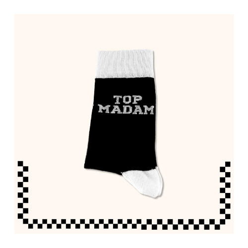 Leuke sokken in zwart/wit met het opschrift TOP MADAM