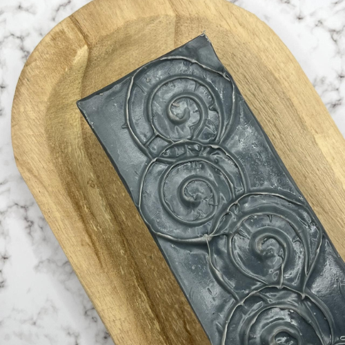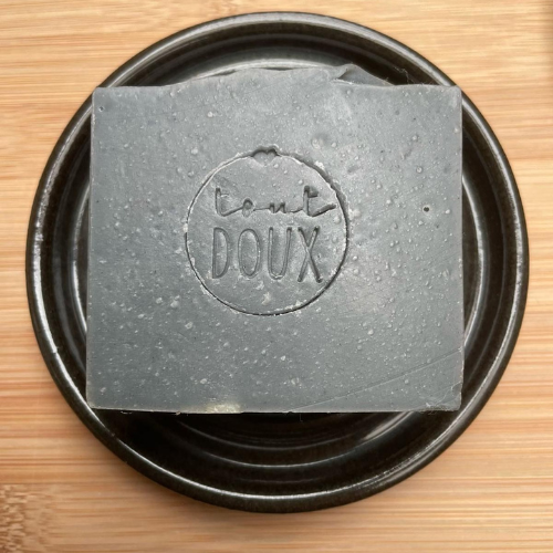 Een stuk natuurlijke zeep met tea tree, rozemarijn en actieve kool.